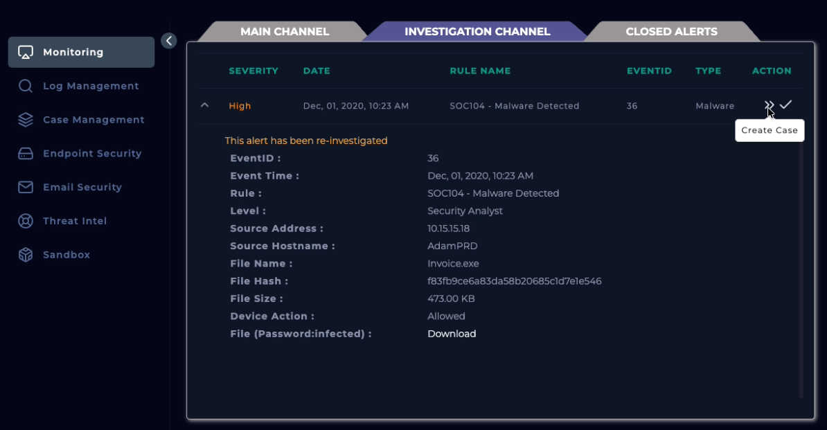 The indicator was a malware detection on the endpoint, so let’s go with “Other.”