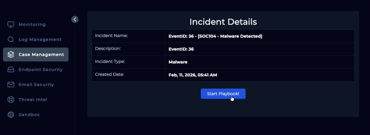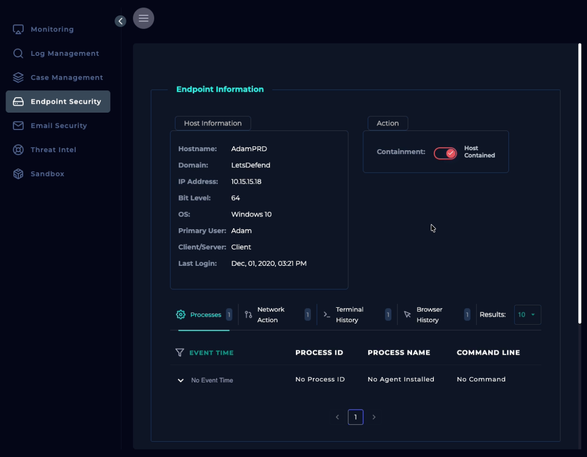 Agent isn’t installed. Yikes. Back to the Playbook in Case Management.
