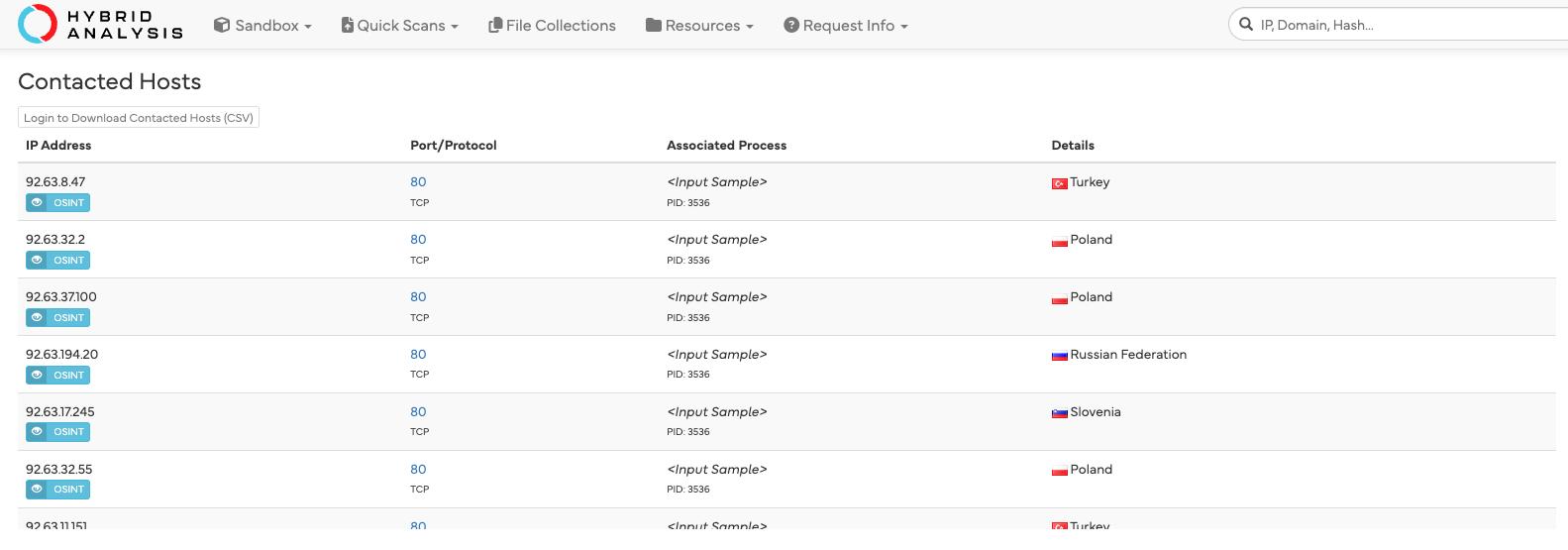 Well, we found a C2 address it was connecting out to, but we’ll follow the playbook. Let’s check Hybrid-Analysis.