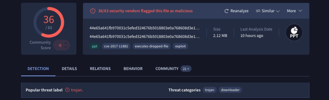 Let’s find the C2 addresses on VirusTotal’s “BEHAVIOR” tab inside the file report.