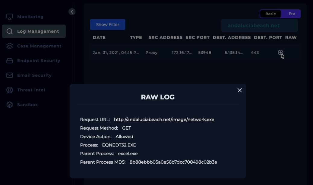 Used the filter URL and found that: Yes, the computer did connect to the C2 server. It ran the malware and got infected. Looks like we’ll need to initiate containment on that endpoint.