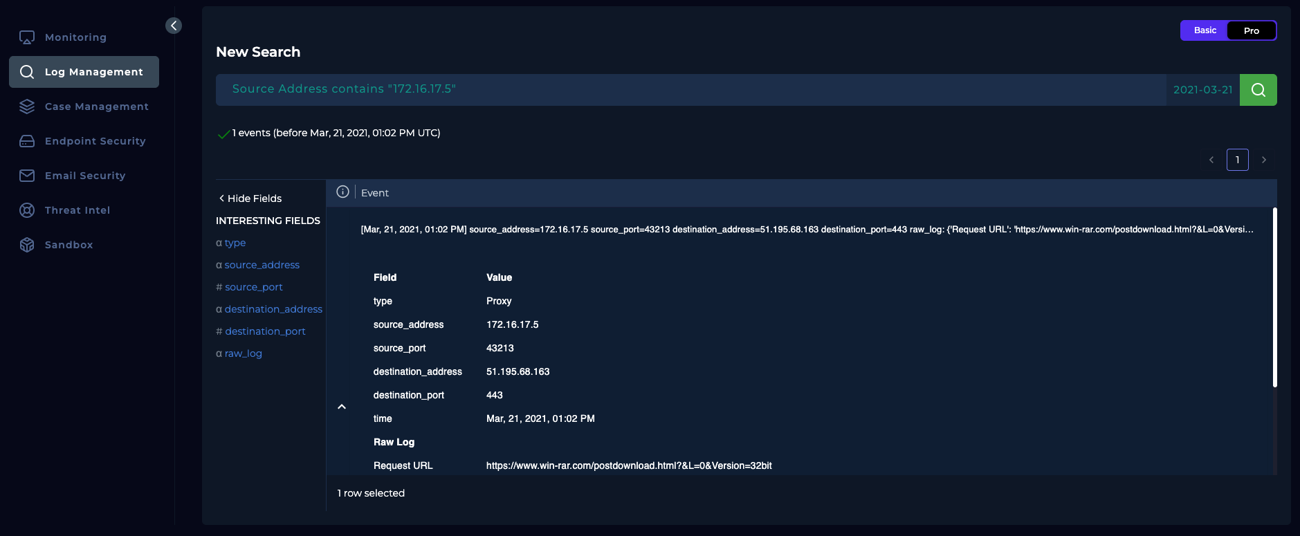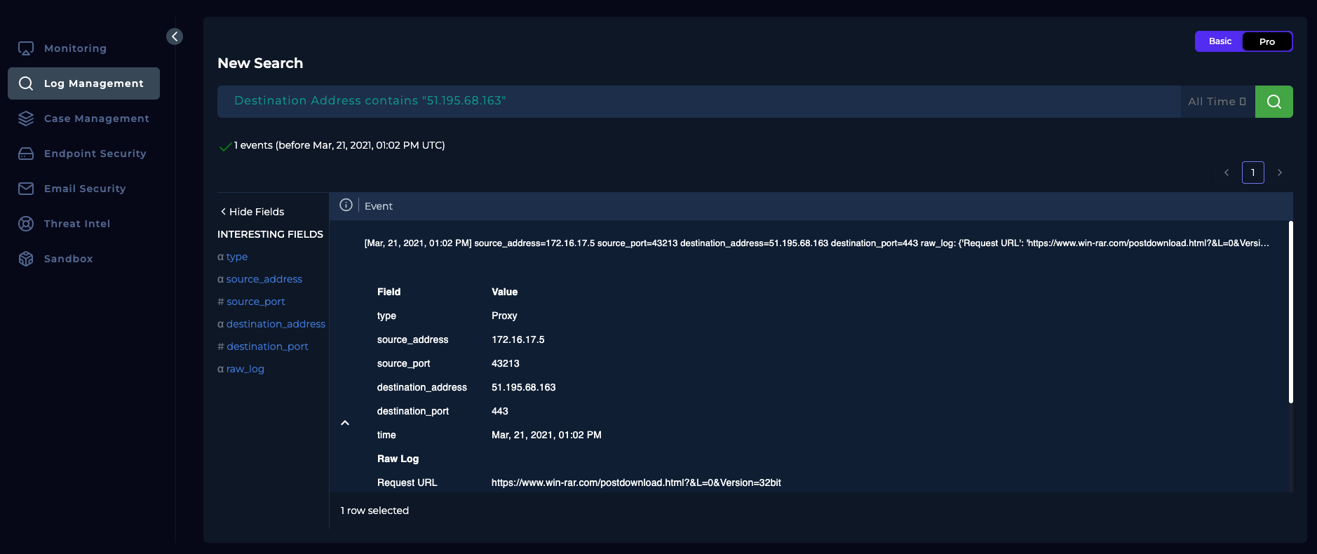 Going out to the website, there is only this one log that triggered the alert.